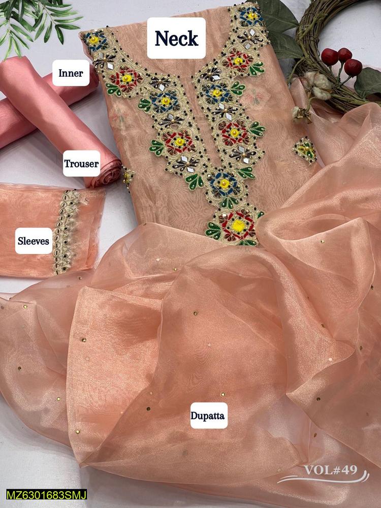 3 Pcs Women's Unstitched Tissue Embroidered Suit