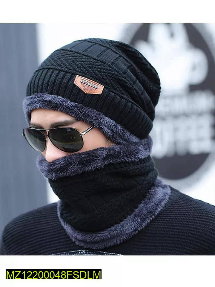 Beanie Wool Cap With Neck Warmer. Full Set-2 Pieces.
